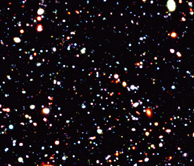 これは、すばる望遠鏡で撮影されたものを加工しています、本物です。 バンで生まれた宇宙の赤ちゃん時代だと思います。勿論写真は許可されています。 説明をみますと点に見えるのは約2億光年ぐらいの銀河だそうです。
